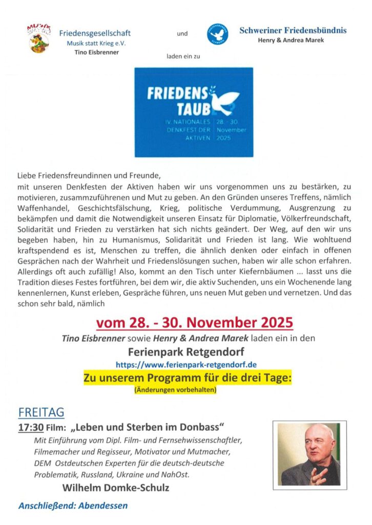 FRIEDENSTAUB – IV. Denkfest der Aktiven