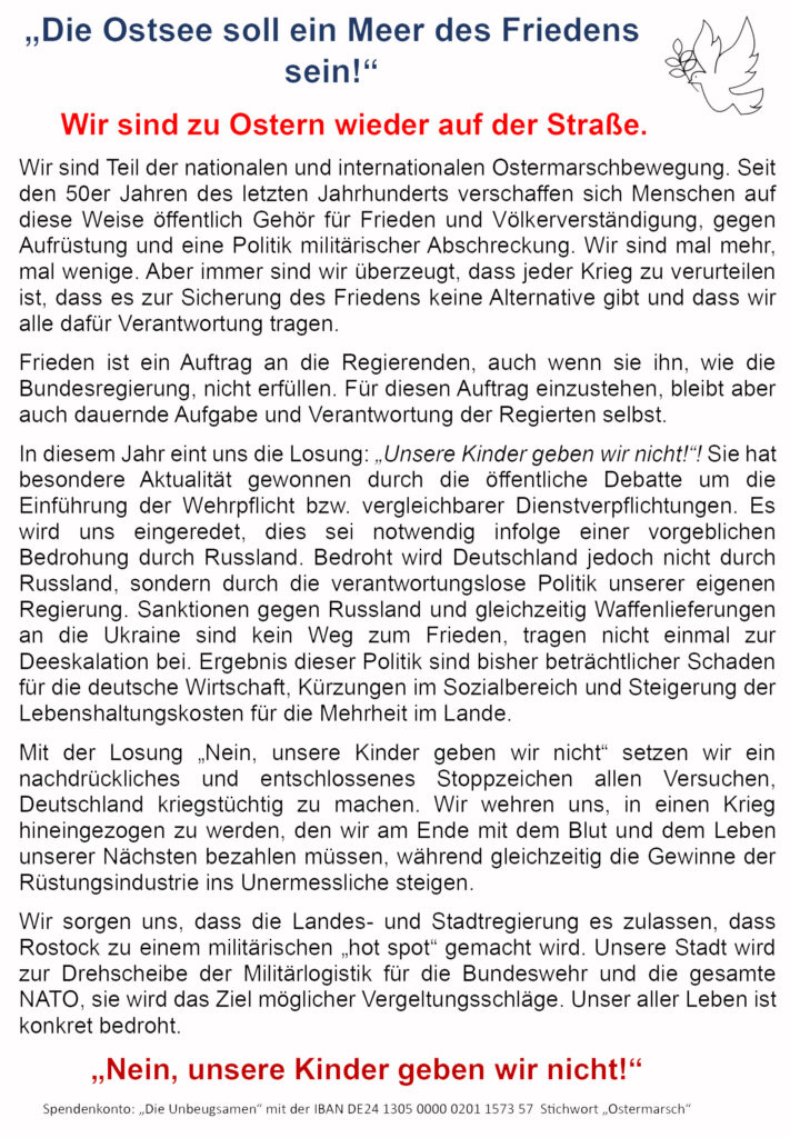 Ostermarsch 2026: Rostock (am Matrosendenkmal)